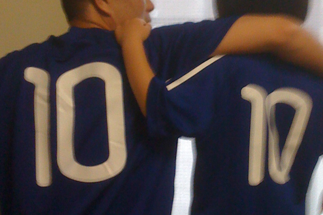 下の子とお揃いで代表Tシャツ着て応援です。